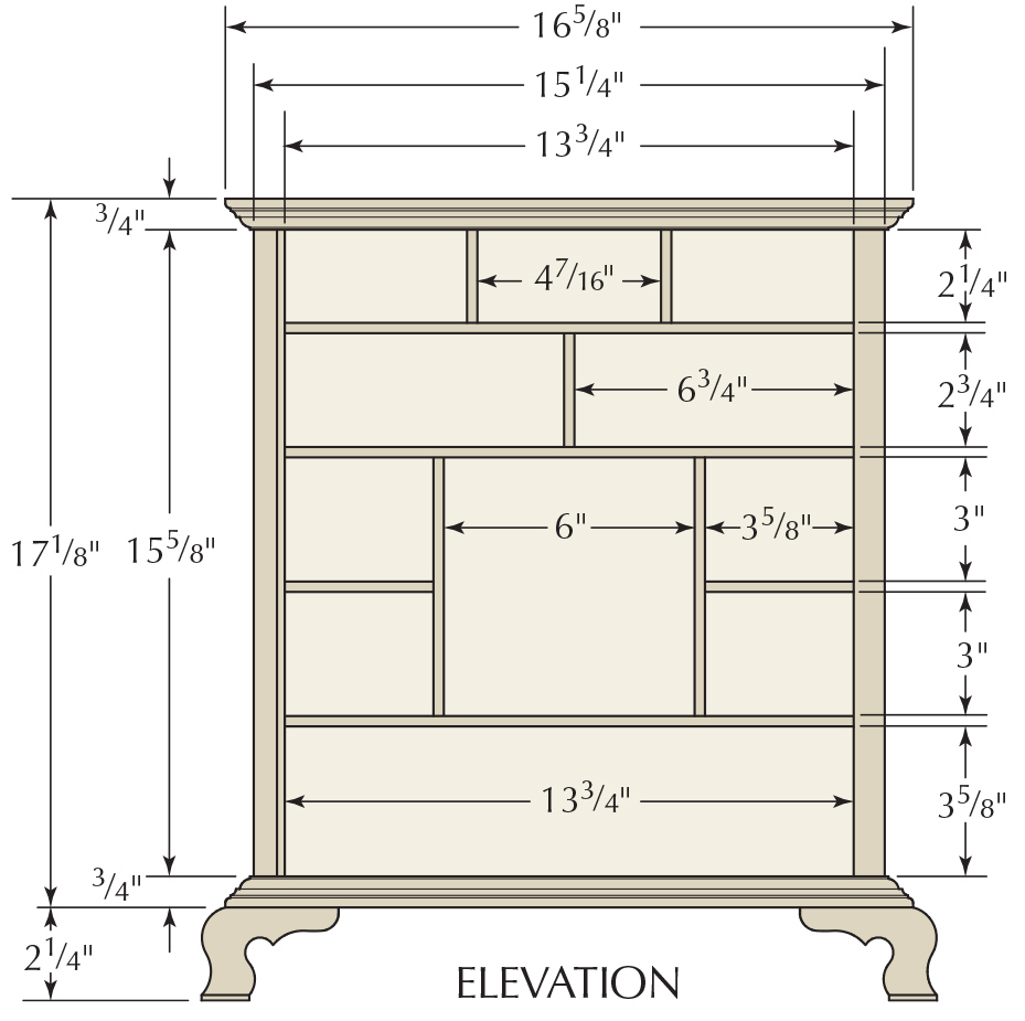 No matter the technique you choose, or if you elect to use both, it’s important to have the drawers look their best. That means continuous grain patterns should flow across the drawer fronts (each row should be cut from one board). Carefully cut and fit your fronts to the case, then mark the fronts so you can easily keep them arranged. Other drawer parts are sized off the fronts.