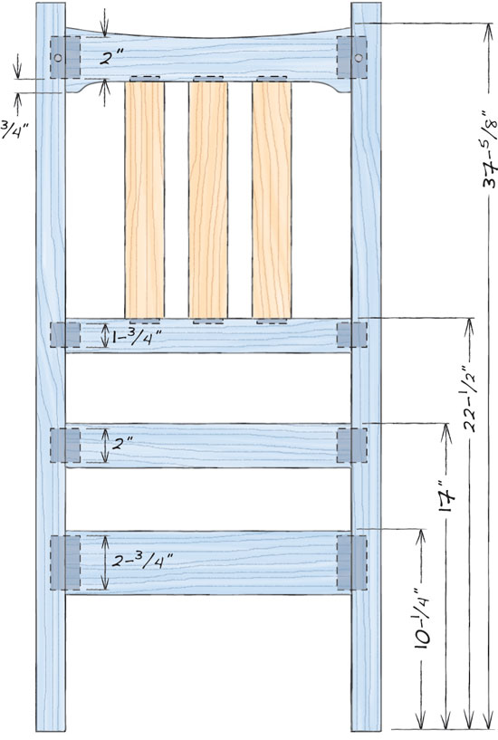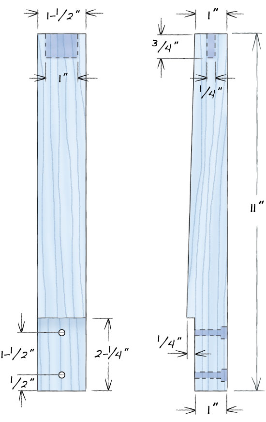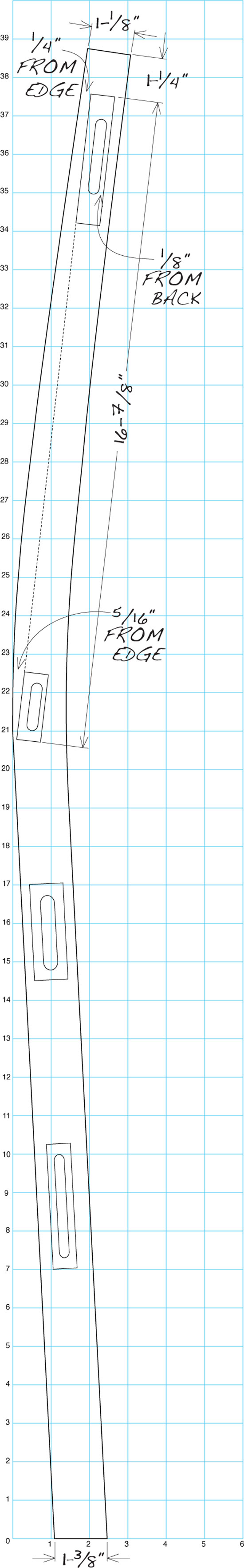 Fig. BB Exploded View(Note: There’s no “Fig. AA.” In the original story, Fig. A shows the mortising jig that’s used to build the chairs.) Fig. CC Back Leg