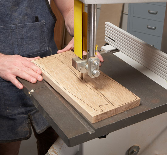 1. Saw out the arms, one right and one left, after using a pattern to trace them onto a blank.