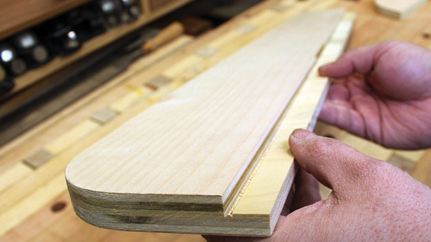 Careful now. As you move things around during assembly, keep in mind that the seam is supported only by small blocks on each end at this point, so take care!