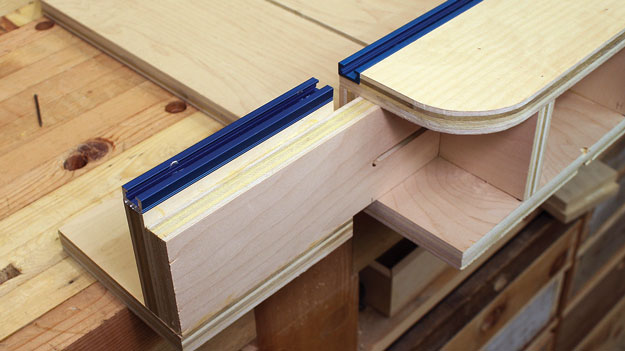 T-track rabbet. Size the rabbet in the upper fence panel carefully so that your T-track will be flush with both the top surface and the edge.