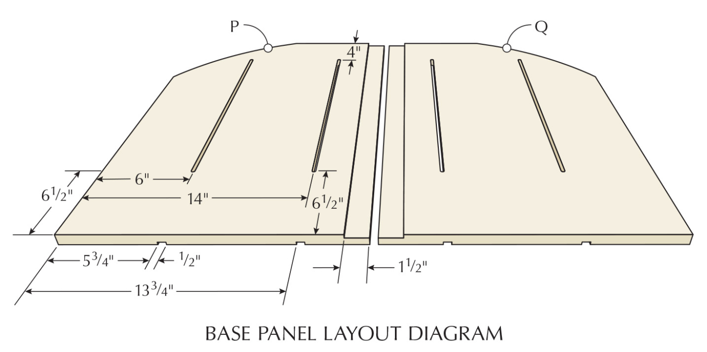 Most table saw sleds are made from a single plywood panel, which is cut in half the first time you use the sled. But I made this sled’s extra-large base from two panels (P and Q on the drawings). As you work on the two panels, keep in mind that they are mirror images of each other. As you lay out the dados, rabbets and slots, reference from the right edge of the right panel and the left edge of the left panel.