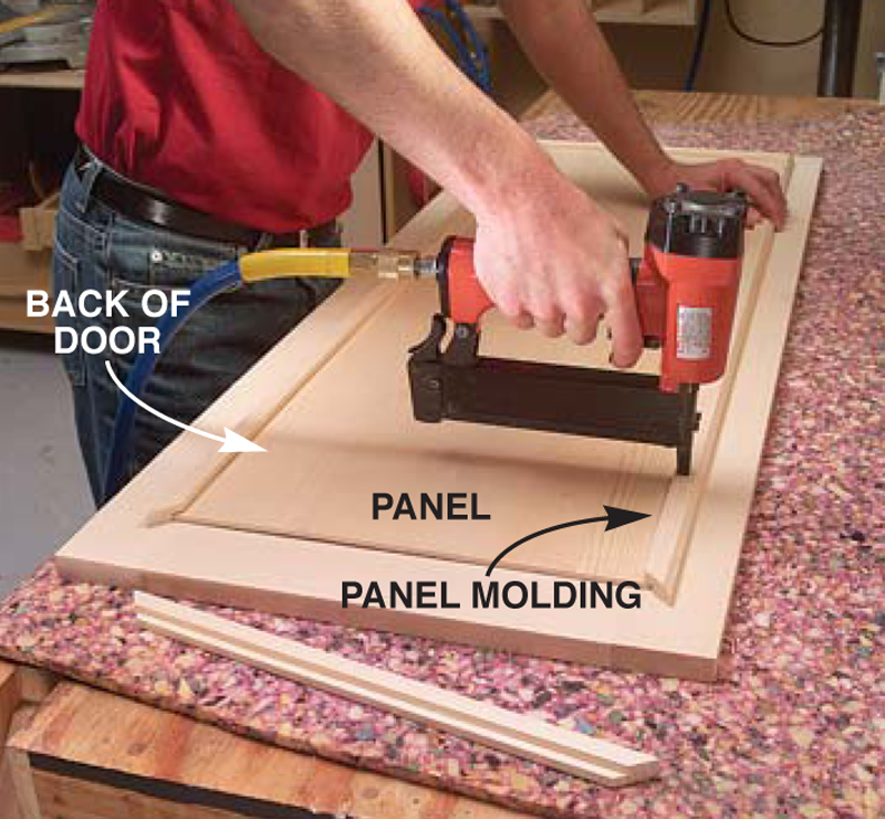 | 14. Nail panel molding to the back of the door frame to hold the 1/4-in. panel in place. Miter the corners of the molding to give your door a finished look inside and out. |
