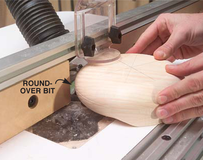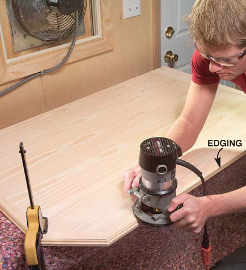 | 9. Rout the ogee edge on the top. Just glue on the edging, sand flush and rout. Then screw the finished top onto the cabinet. |
