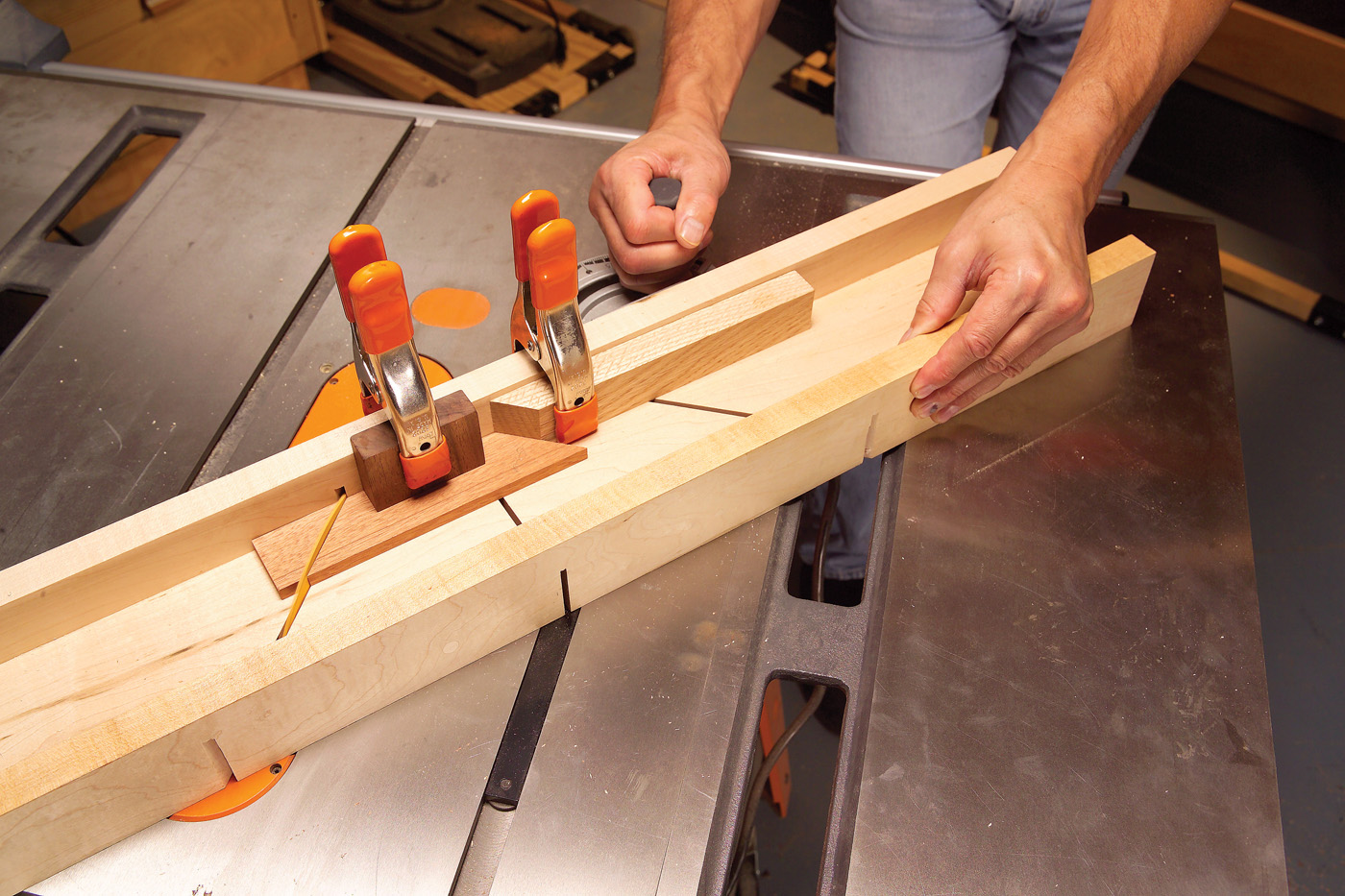 11. Make the splines (D). Their exact thickness is very important. Too tight, and you won’t be able to slide them in the grooves after you add glue. Too loose, and they won’t align the frame pieces. The spline’s width should be 1/64 in. less than both grooves’ combined depth.