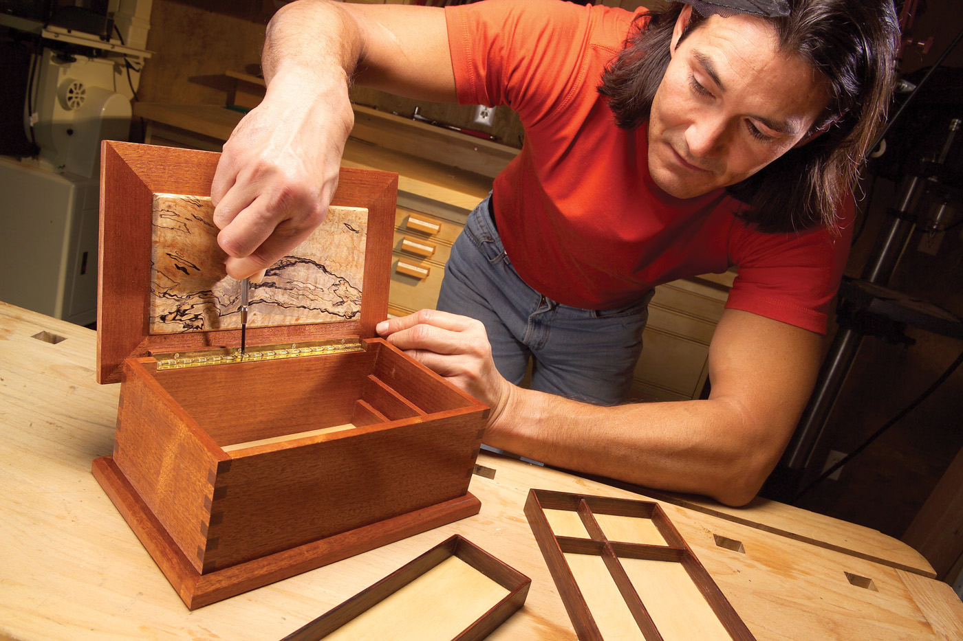 I’ll bet somewhere in the dark recesses of your shop you’ve squirreled away a small piece of special wood, just waiting for the right project. No doubt you’ve saved it to become the centerpiece of something well-crafted, small in scale and novel in design. This jewelry box is the perfect project to showcase that dusty board.