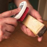 Then, place the edge of the chisel on the line and push straight down. Don’t push hard – just enough to make an incision along the pencil line. The edge of the chisel will fit in this slit; tilt the handle of the chisel toward you. Looking down the handle, aim for the edge at the bottom of the mortise. With the chisel in position, a few taps with a mallet make the slanted cut on the inside of the mortise.