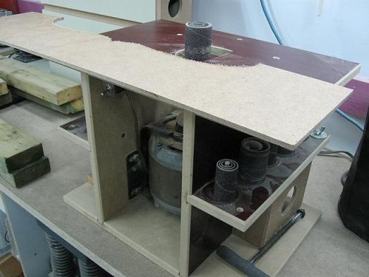 To get a smooth cut that will guide the router later, I use my shopmade spindle sander that I built right here in my workshop.