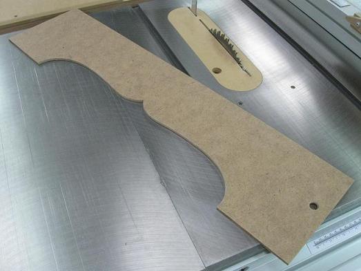 The cut completed, I drill one end so I could hang my router pattern guide and use it on a future project, if need be.