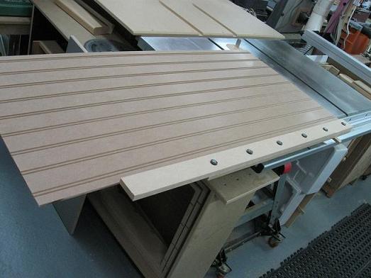 The back panels being cut in width and the beads being machined, the next step is cutting them to length.