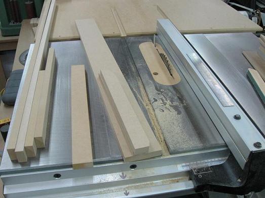 I’m ripping strips to make the moldings to fill the underside of the top shelves. To stay on the safe side for the router table, I rip them wider than required.