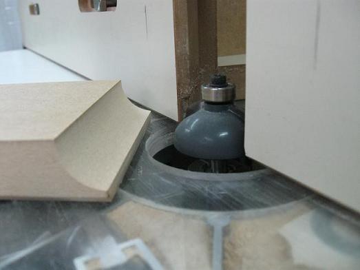I install a 1/2’’ roundover bit in the router table.