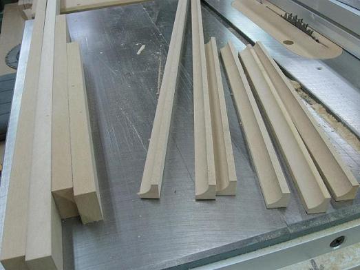 At right, the first batch of moldings is done.