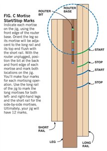 rails, using the tenoning jig. Orient the rail so the offcut falls