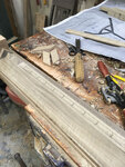 To make the jig, I first swung my metal drill table to the side and clamped on an auxiliary table. I made the table out of two 3/4-in. thick by 16-in. wide by 32-in.-long boards, glued and screwed together. The double thickness is required for strength because the drilling action puts a lot of pressure on the table. Then I built the jig and screwed it to the auxiliary table. The 16-in.-long side support board keeps the workpiece vertical in the left-to-right position. The front support board keeps the workpiece vertical in the front-to-back position.