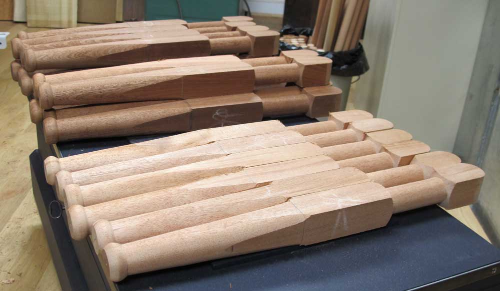 I’m in the middle of turning about 40 of these legs for Roorkhee chairs I’m making for customers, and I shot a short video that shows how I do this.