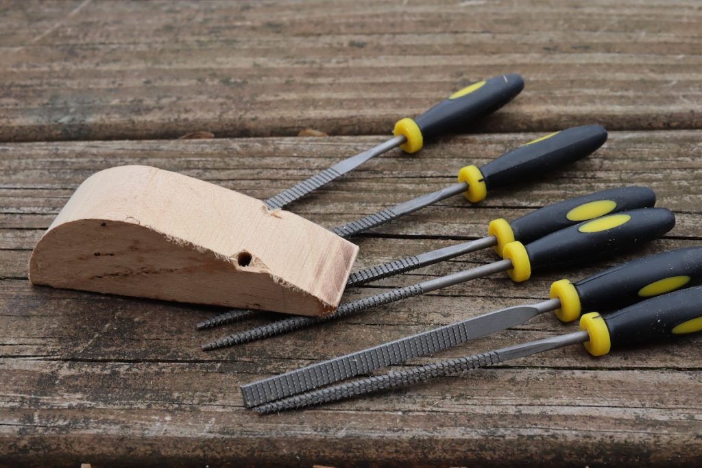 When I teach remote whittling classes for adults we use knives and I spend a considerable amount of time talking about knife safety. But for the kid’s classes, I decided to forgo the knives and use needle rasps instead – since these inexpensive tools are remarkably effective and safe. Sure, a child can accidentally rasp their finger but the damage is minor and the wound will heal quickly. Throughout my teaching career, I haven’t yet heard about a child who was sent to the ER as a result of a needle rasp accident.