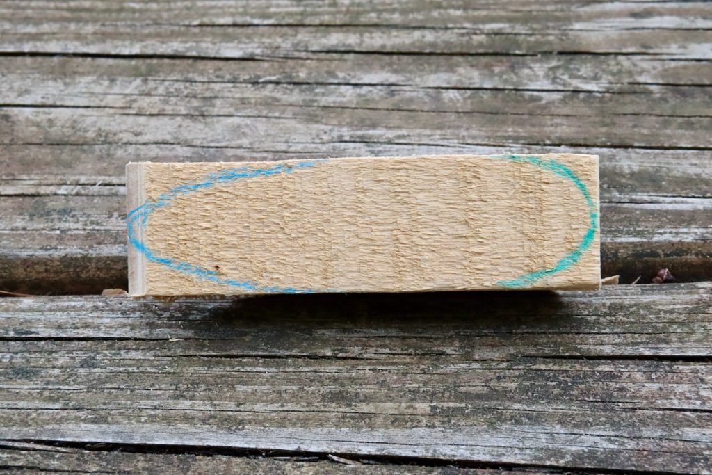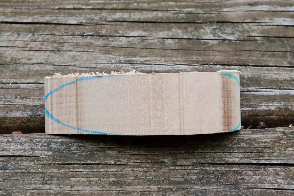 Using one of the flat rasps ask the child to rasp away the rear of the mouse until they reach the half-circle line. Emphasize to your kid that the wood needs to be removed completely so when we look from above (or below) we should see half a circle. A mere rounding over of the corners is not enough.