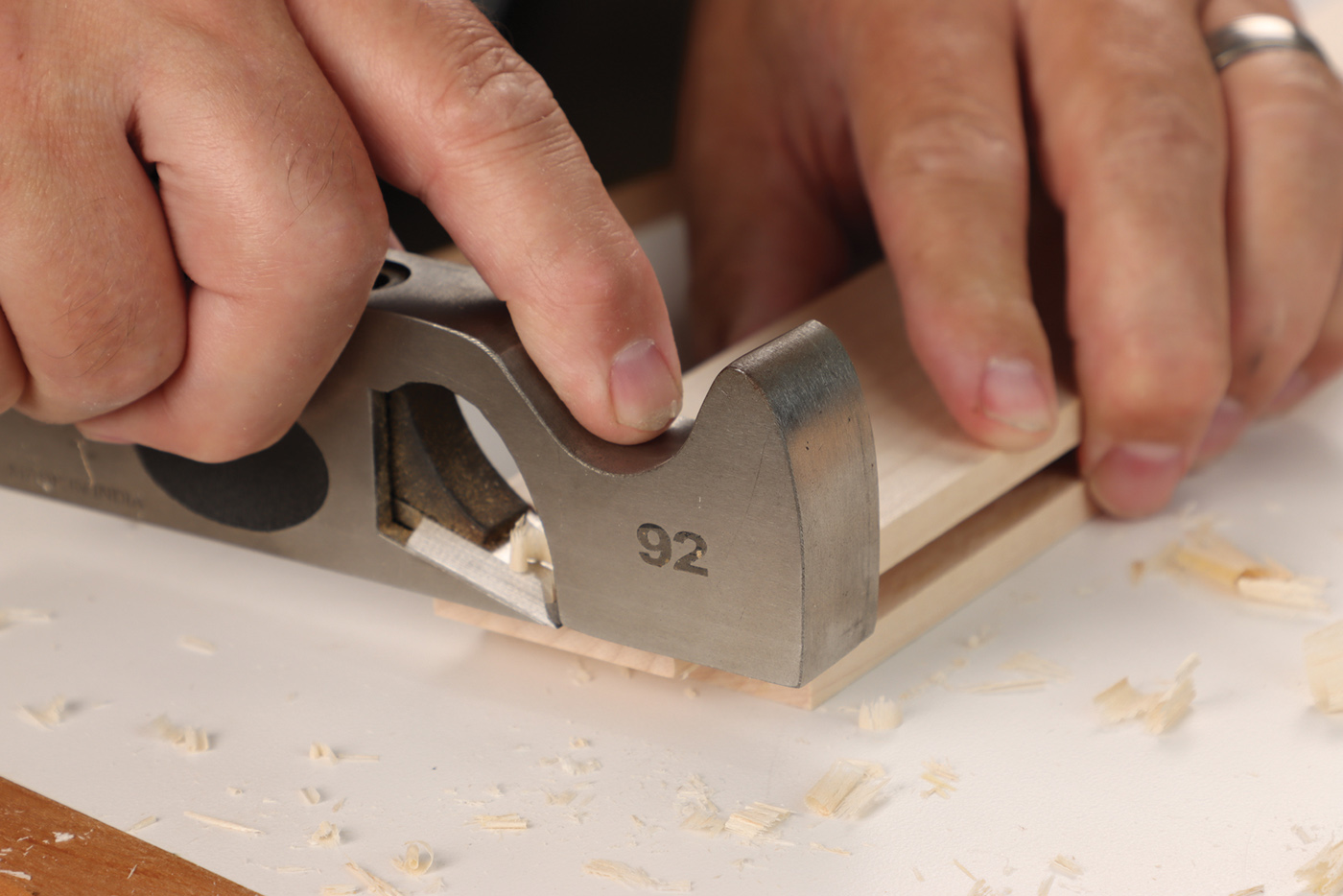 17 Fine-tune the tenon fit with a few swipes of a shoulder plane.