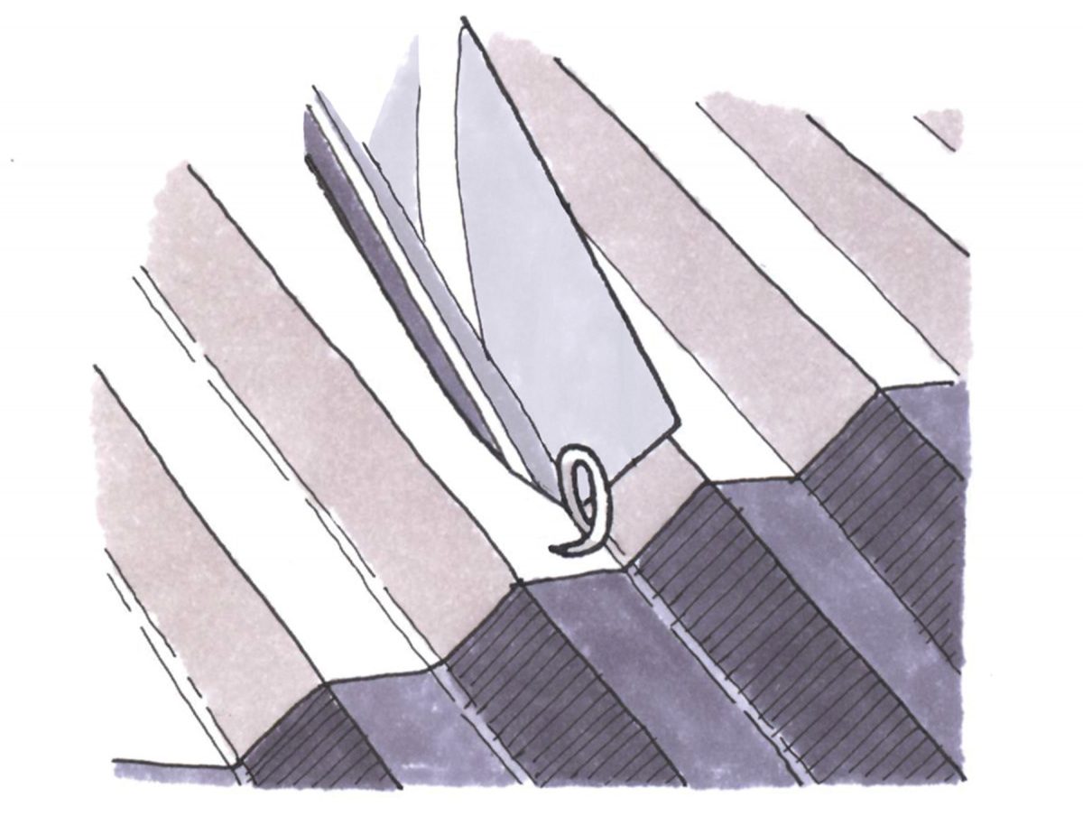 The V-groove gouge removes the flat left by the router bit.