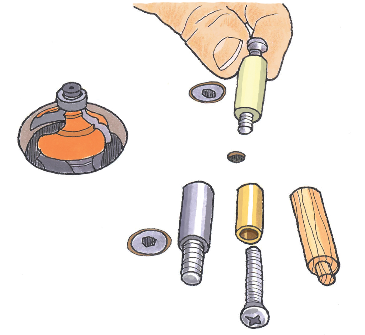 Manipulating two wrenches can be frustrating enough. Grab a piece of copper or something else bendable and make a bit spacer to avoid bottoming out your router bit in the collet.