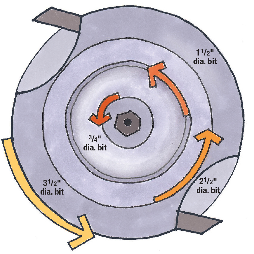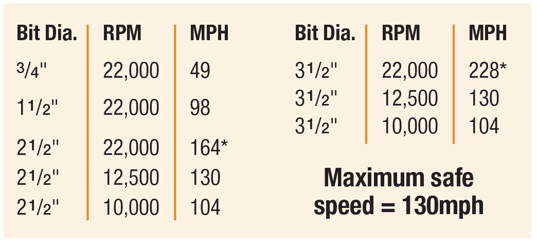 It can be tempting to set your router speed and forget it. But there are very tangible consequences to using router bits of different diameters. At 22,000rpm, 3/4” bit has a tip speed of 49mph. A 1-1/2” bit at the same rpm has a tip speed of 98mpg. That’s twice the speed! So, you’ll need to feed slower or turn your speed down (proper cutting is always a relationship between speed and feed). Bits will come with recommended speeds, and you should always use those speeds as a starting point. Listen to the router as it cuts. You’ll hear if you need to make adjustments.