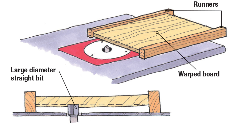 Attach runners to both sides of the board and run it across a straight bit. You’ll be shocked at how well this works, especially for smaller stock.