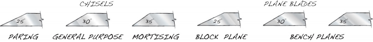 If you prefer a double bevel, make the grinding angle 5° less than the honing angle. A general purpose chisel, for example, is ground at 25° and honed at 30°.