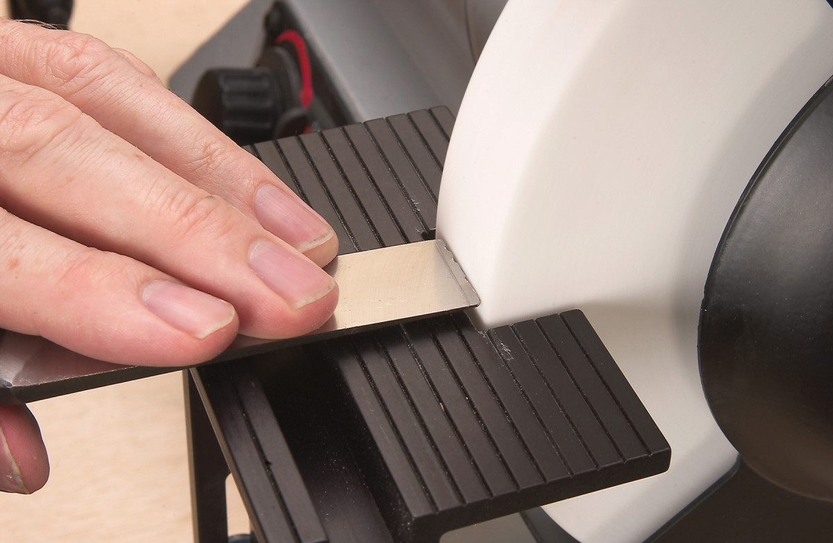If your chisel gets a serious nick or ding, you’ll have to grind away a lot of metal to renew the edge. The best strategy for doing this is to adjust your grinder’s tool rest to 90° and blunt your tool like a screwdriver. Once you’ve ground past the damage, reset the tool rest at the appropriate grinding angle and have at it.