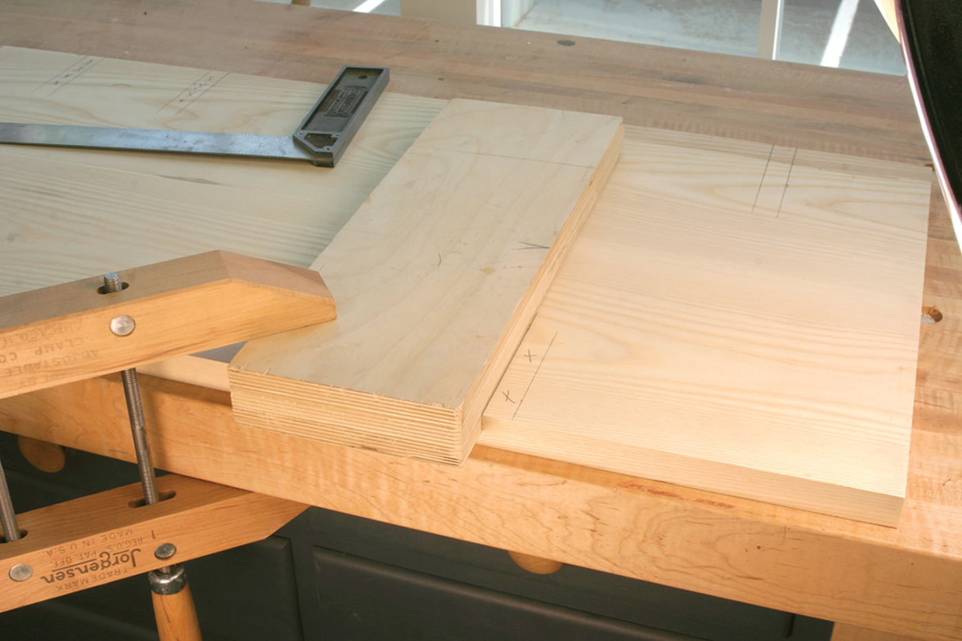 Quick and secure. The design of the platform jig allows a single clamp to hold the jig in place. This allows the jig to move to the next layout line quickly. Once the clamp is tight, it’s all but impossible to slide the jig in either direction.