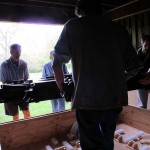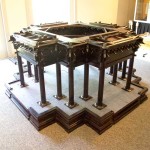 From a woodworker’s perspective, the pavilion is a fantastic study in carving and joinery (not to mention form). The entire replica pavilion is assembled without nails. Lincoln Logs? Ha. Wait until you see Ming Logs. As the volunteers removed the carvings and the roof structure, I got to examine the support structure below, which was a maze of interlocking bridle joints. Many of these bridle joints have circular shoulders so they could mate with round columns.