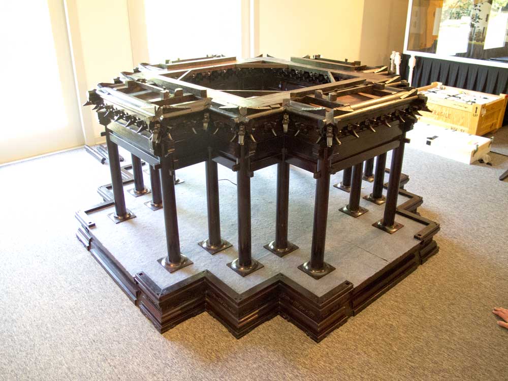 This sandalwood replica was built about 10 years ago and was donated to the Smithsonian by the China Red Sandalwood Museum in Beijing, according to Don Williams of the Smithsonian, who leads a team of volunteers that move the 1:5 replica to museums around the country.