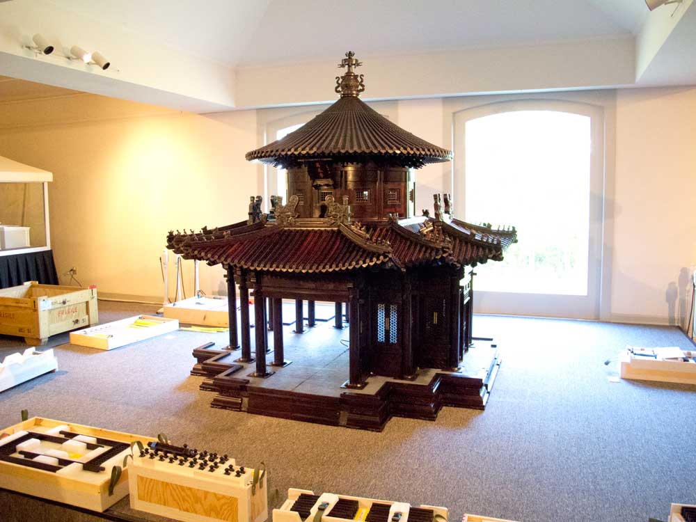 This week I drove to the Headley-Whitney Museum in Lexington, Ky., to watch a team of eight men disassemble an 800-piece puzzle made of red sandalwood in the shape of the Ten Thousand Springs Pavilion. The original pavilion, known as Wan Chun Ting, sits on a man-made hill in the Forbidden City (check out the awesome photos here). The pavilion was built about 1420 (rebuilt in 1533) and offers beautiful views of the Forbidden City.