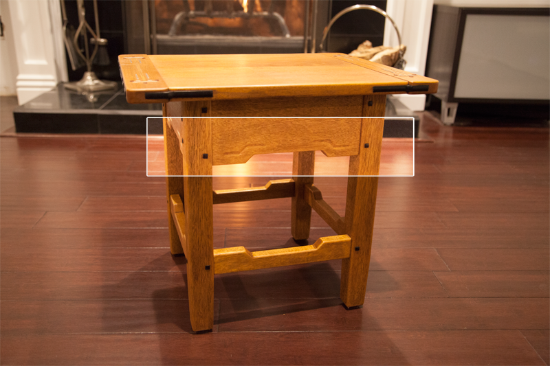 Much of the furniture found in the Gamble House living room has a cloud lift pattern detail on all four sides, along with a carved pattern matching this detail. The cloud lift shape can be accomplished by template routing, but the corresponding carving requires a few more steps.