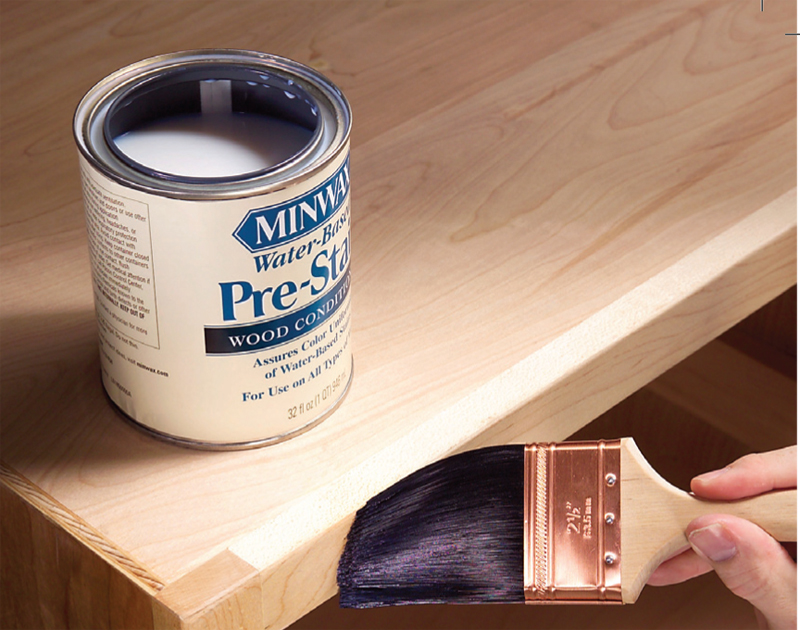 Most cans of water-based wood conditioners say you can stain 30 minutes