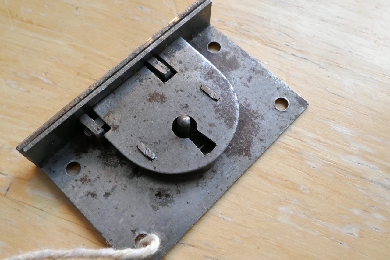 This is “New Old Stock” (NOS) in pristine condition. It’s a fully stamped steel box lock I found years ago in a small hardware store in Massachusetts. Sadly, this type of rugged, industrial-grade steel lock is no longer in production.