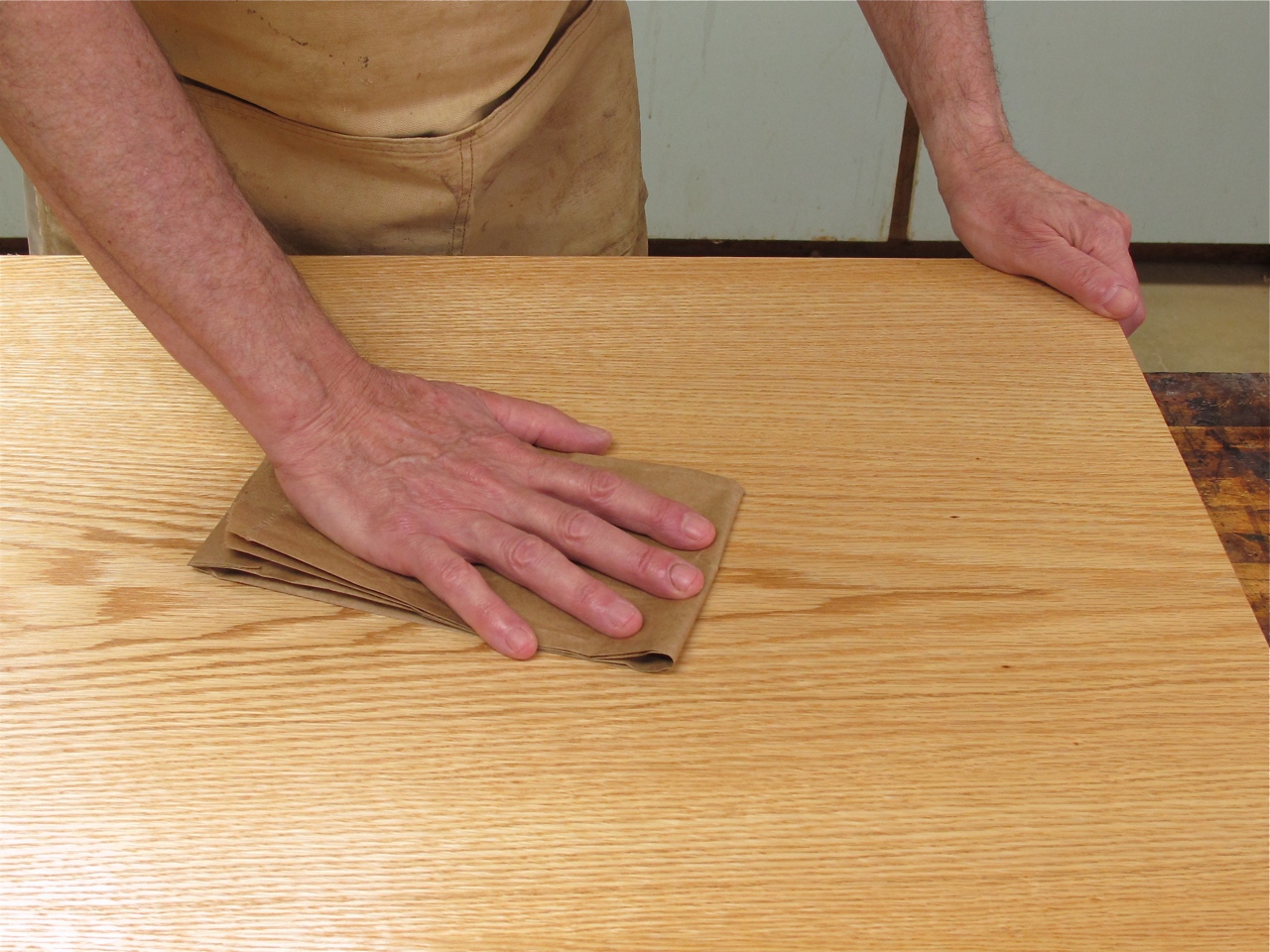 You can always make the finish smooth by rubbing with fine sandpaper and rubbing compounds, but this is a lot of work. Unless you are aiming for the ultimate in smoothness, rubbing the surface with a folded brown paper bag is usually sufficient. A brown paper bag is abrasive enough to flatten the dust nibs but not so abrasive that it scratches the finish — as long as the finish is fully dry.