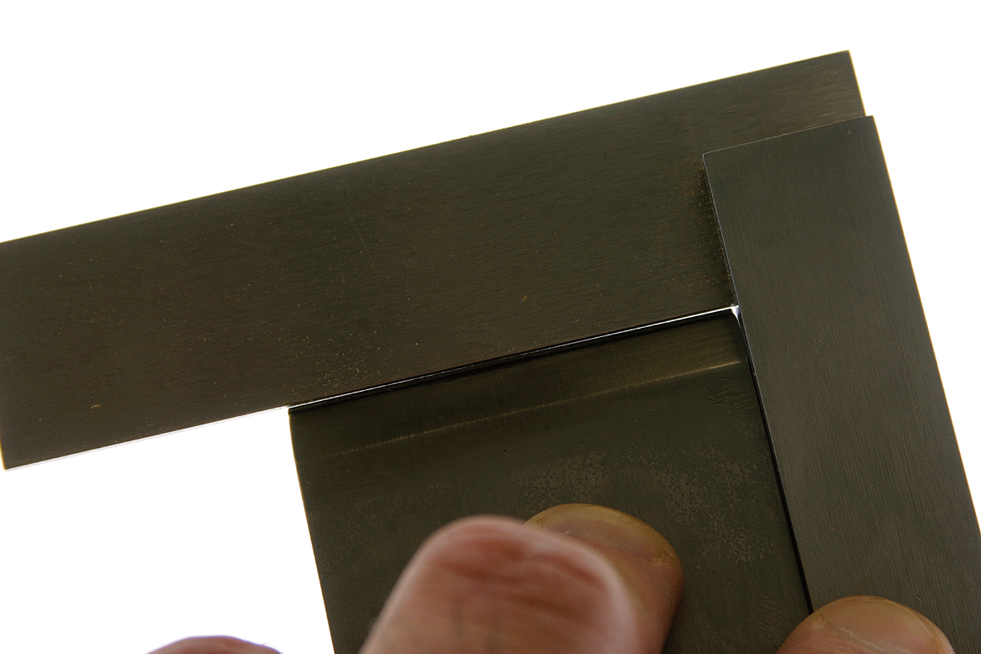Winding sticks (I like aluminum angle) exaggerate any warp or high spots on the board’s face. View the winding sticks so they are in line with one another.