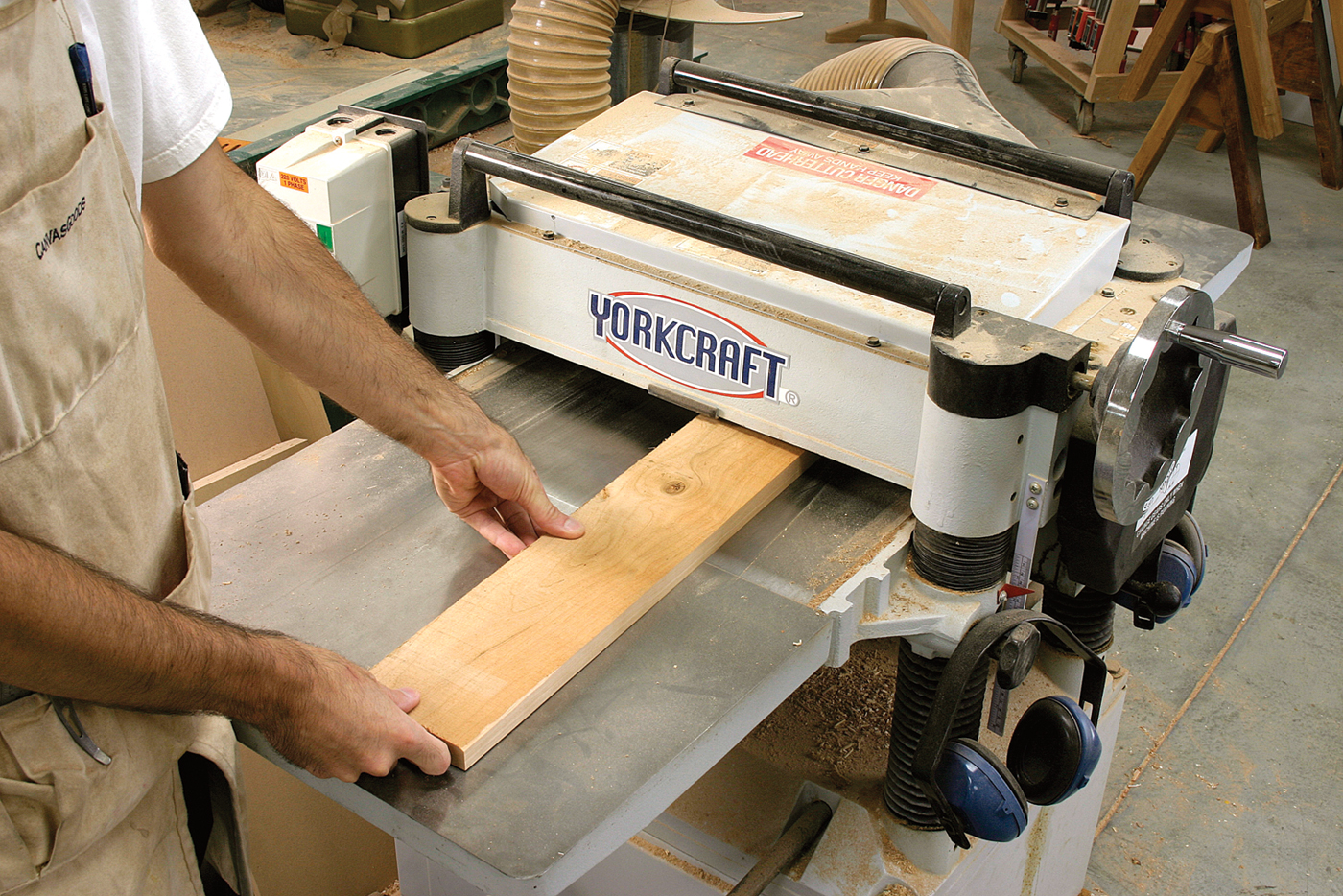 The powered jointer (above) and planer (below) are faster than a fore plane (though they won’t burn as many calories during use).