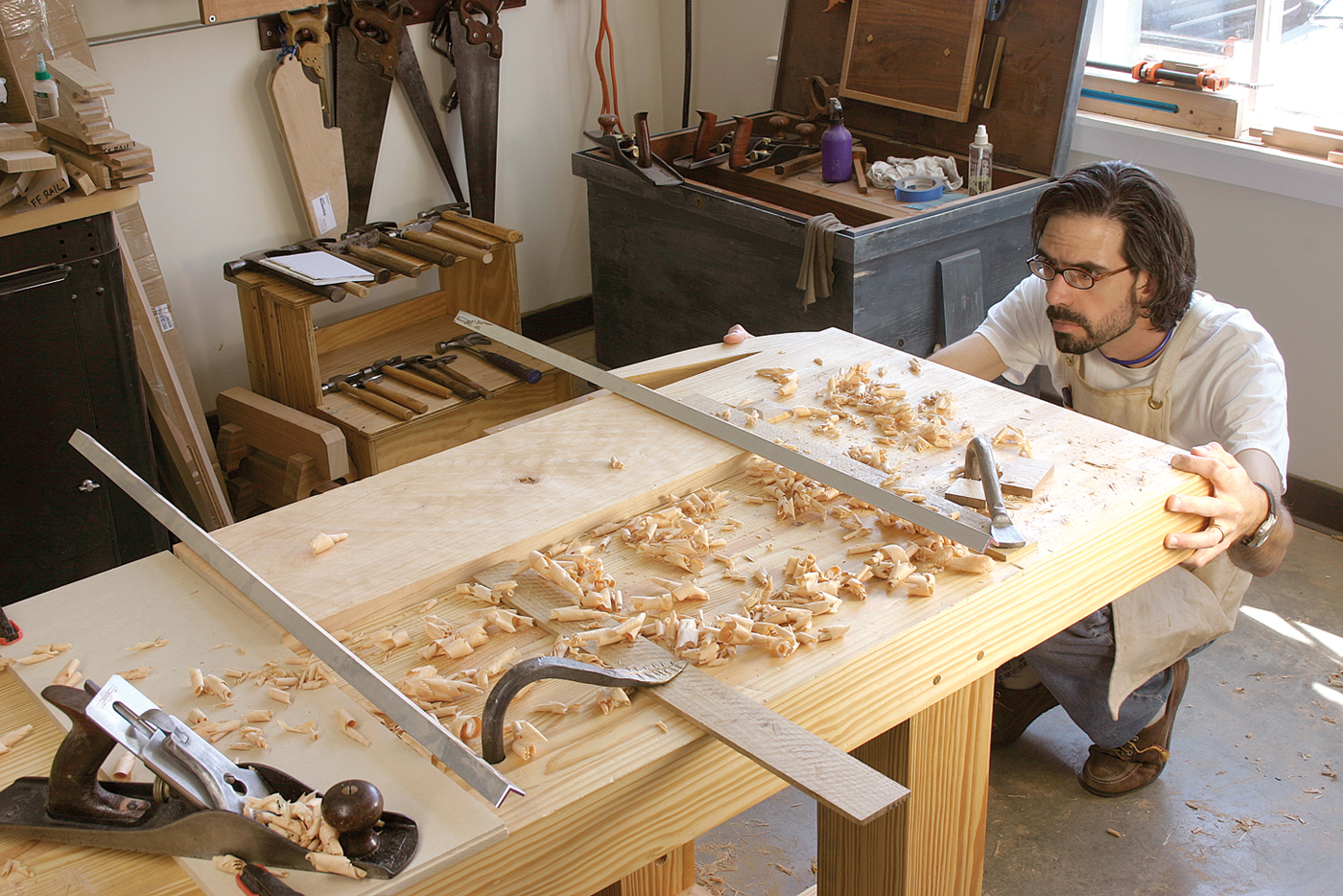 Once the coarse stuff is over, I use my jointer plane to true my stock before cutting my joinery. This medium tool removes snipe and machine marks, and makes the boards flatter than my power equipment can. Finally, my smoothing plane is my primary fine tool, although I scrape and hand sand, too.