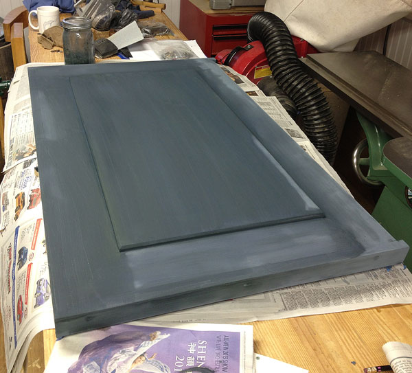 Why did I elect to use milk paint instead of easy-to-find and easier to use latex? Milk paint, after all, in its simplest-to-use configuration**, comes as a dry powder that must be mixed (sometimes vigorously, depending on the pigments) with water, has to settle for an hour or so, then takes at least two coats to look decent, plus a protective topcoat. And, because it’s water based, you have to either raise the grain and sand before starting or sand after the first coat. You also have to stir the paint often while you’re painting to keep the pigments from settling, and it’s best-used fresh (ideally, the same day it’s mixed, and no more than two days old, says Mike).