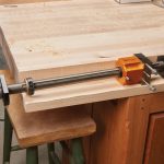 I like to use Titebond III because it’s the right consistency (not as thick as Titebond II) and it’s waterproof, which prevents raised glue lines later. After gluing in a piece, I secure it with masking tape, wipe away excess glue, and move on to the next cut.