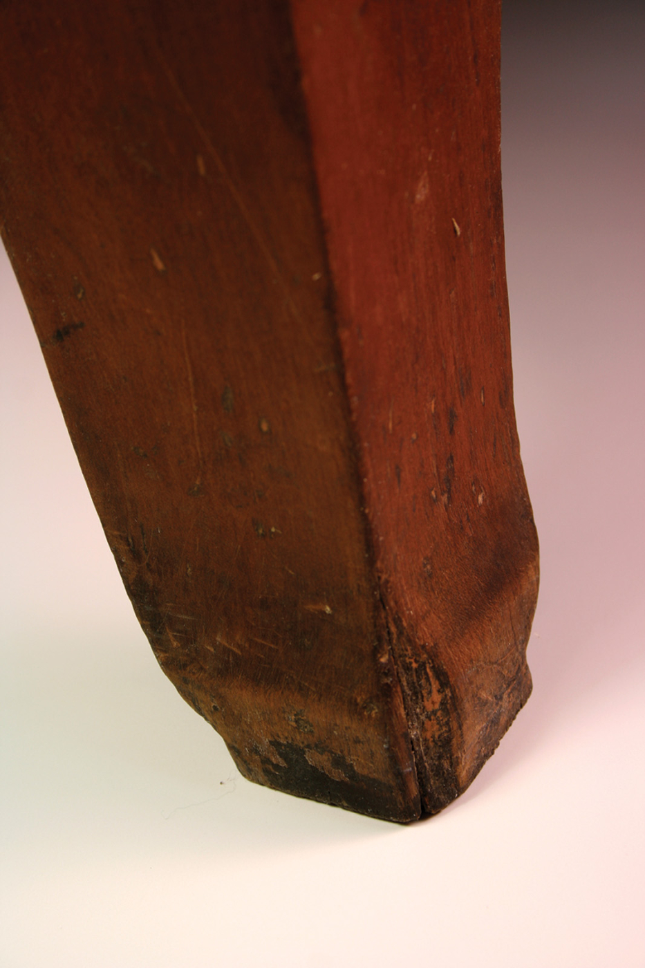 The second prevalent type of wear is incidental. “Incidental” means wear that did not result from ordinary use. Incidental wear is what happens to a piece of furniture when it spends time around human beings. Incidental wear might happen while the piece is experiencing ordinary use. However, it is not the result of that use. It is caused by something else. In writing your plausible fiction for a piece you made, ordinary wear is the day-to-day stuff of life. Incidental wear is the events that make life interesting.