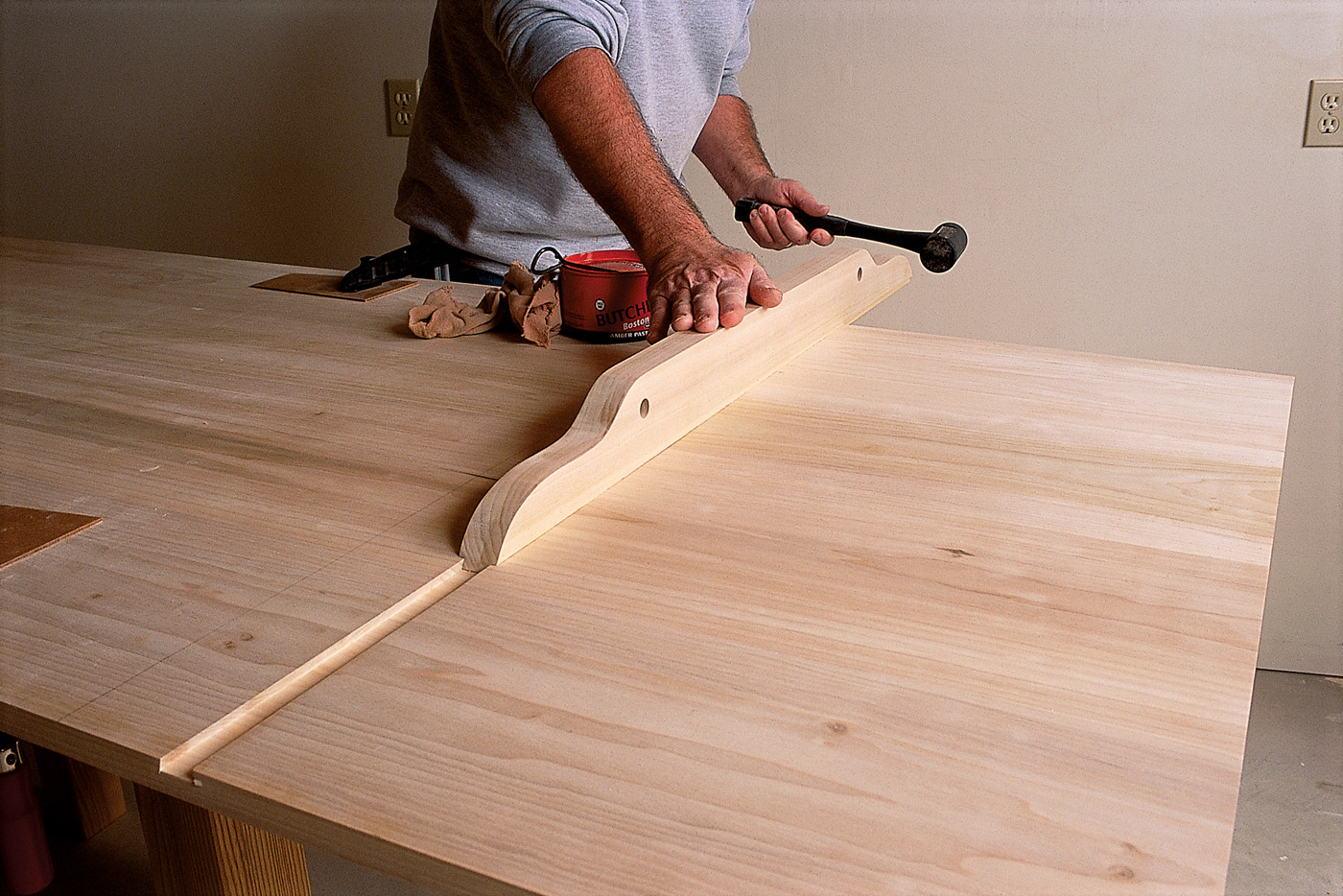 Sliding the batten into place requires some force. Since you aren’t gluing the parts, and there’s going to be some seasonal movement anyway, go ahead and apply wax to the slot and the tail. As friction builds, you’ll have to whack the batten with a dead-blow mallet to keep it moving.