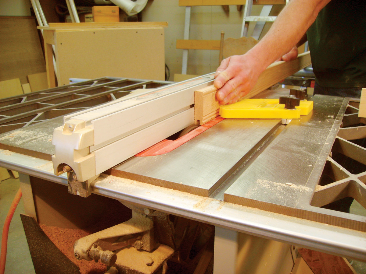 1. Rout the molding on your stiles and rails (Photo 1). It can go on the inside or outside edges of the frame–whatever you like. Set up a featherboard on your router table to ensure that all the cuts are smooth and the same depth.