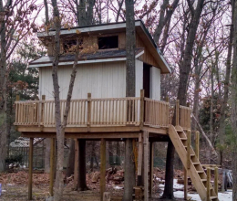The most common mistake people make when building a treehouse is forgetting that a tree is a living being. If you build like you’re working off of a giant wooden post sunk into the ground, you will likely hurt or kill the tree. I see this a lot when people build treehouse that strangle trees, or build a house that will eventually choke the tree to death. Trees are resilient and extremely strong; you can build an amazing tree house that grows with the tree, but it takes some understanding of tree anatomy. Trees move a lot and grow fast and you have to take that into account when designing.