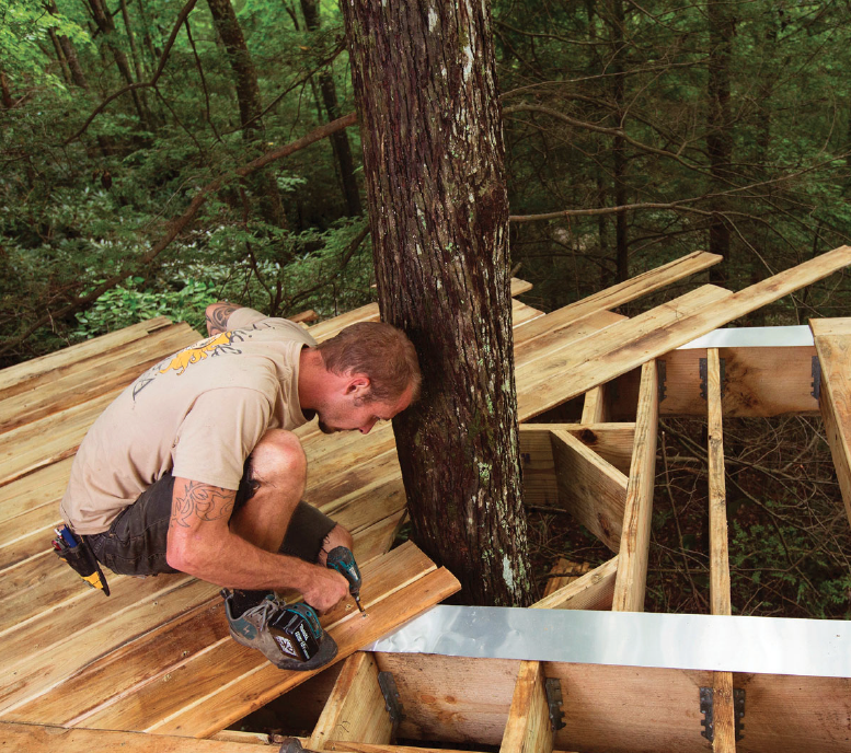 Django owns Canopy Crew, a company dedicated to building treehouses and he even has treehouse rentals. Django felt that a lot of treehouse books were big on inspiration, but didn’t have as much practical building advice as he’d like. He worked with us to create a book that digs into the process of building a treehouse from choosing a location, to tree selection, to zoning and permits, to tool, materials and building techniques. Don’t worry, you’ll find some nice gallery shots to inspire you as well.