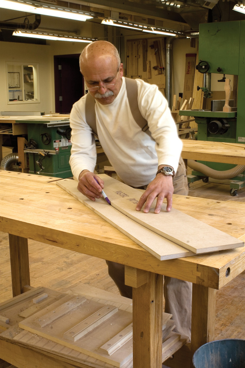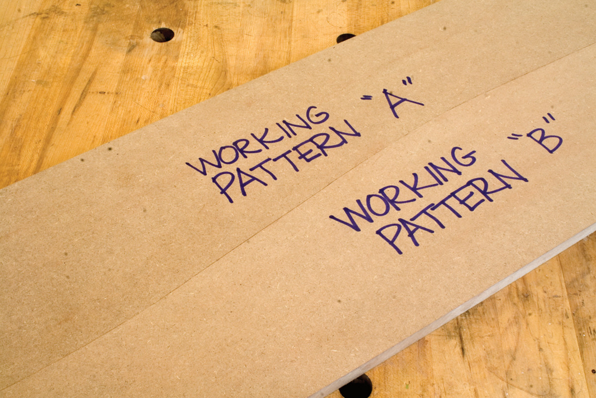 Pattern repeat. After fine-tuning the master pattern outline, transfer it onto a wide piece of 1⁄2″ MDF.