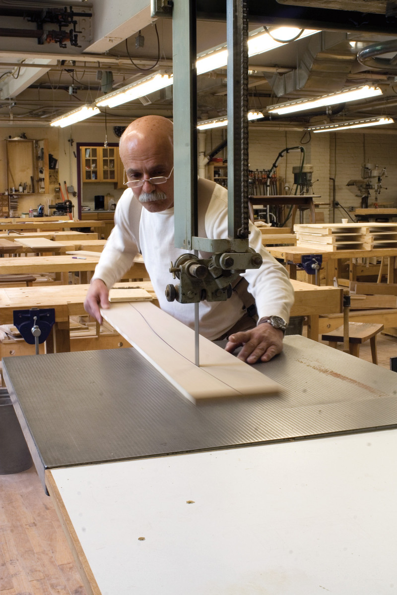 Center your master pattern on a piece of 12″-wide, 1⁄2“-thick MDF and transfer the outline. Strive for a single clean, clear line. The next step, band sawing this line, is important because the quality of the cut will directly impact the quality of your joint. The size of the saw you use is unimportant; even a 14” saw will do.