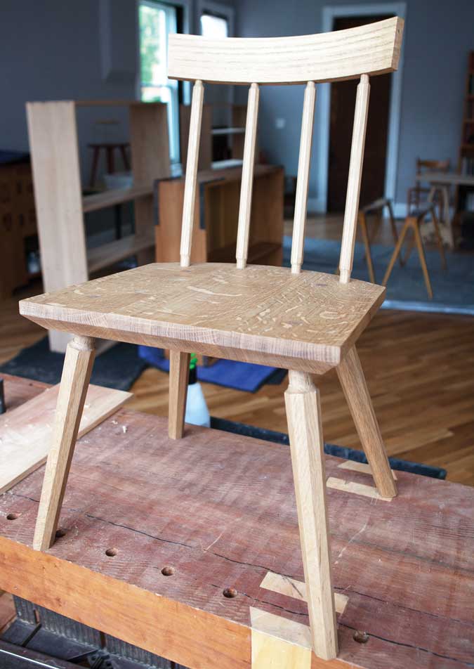 Oak & soap soup. Here’s a white oak chair finished with the “soap soup” solution. It is nearly dead-flat in sheen and takes on a grayish cast from the soap.